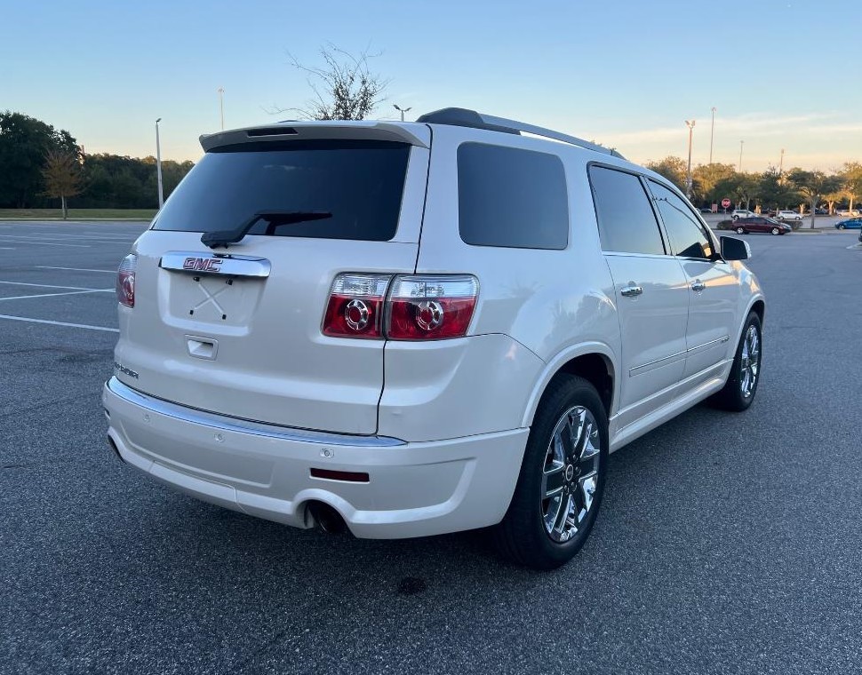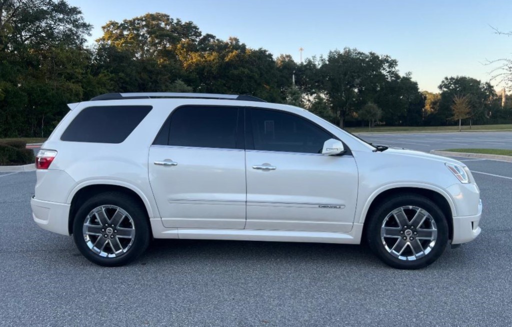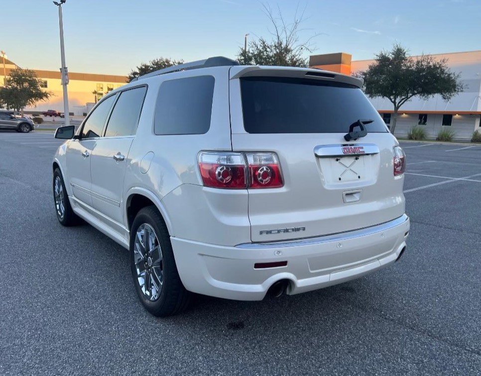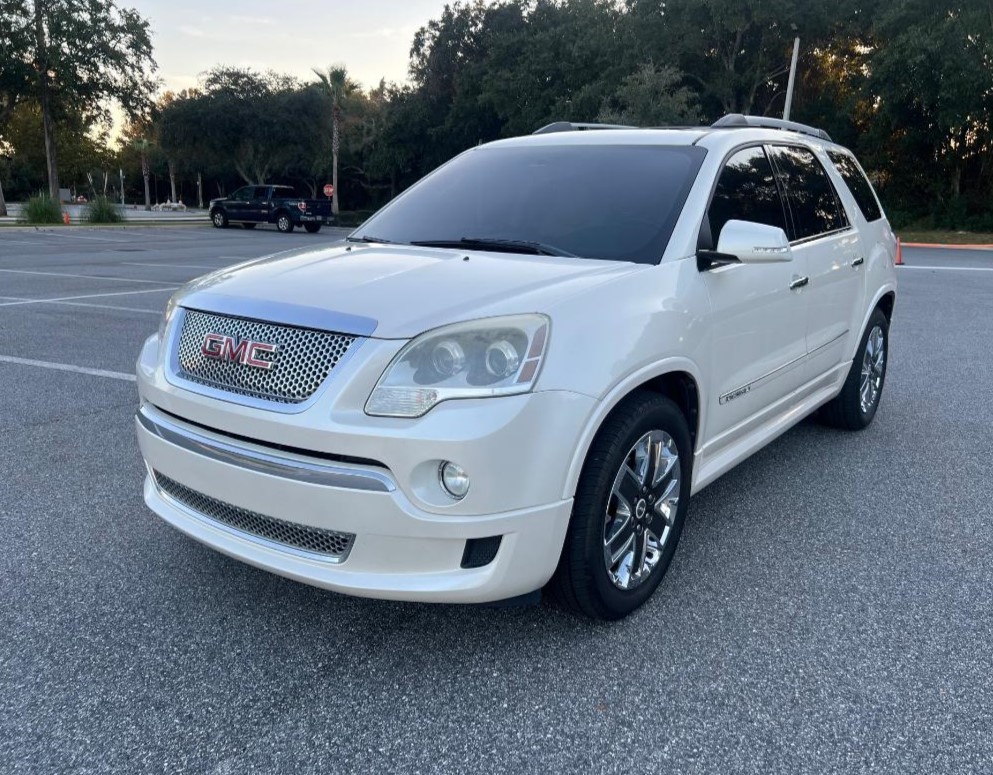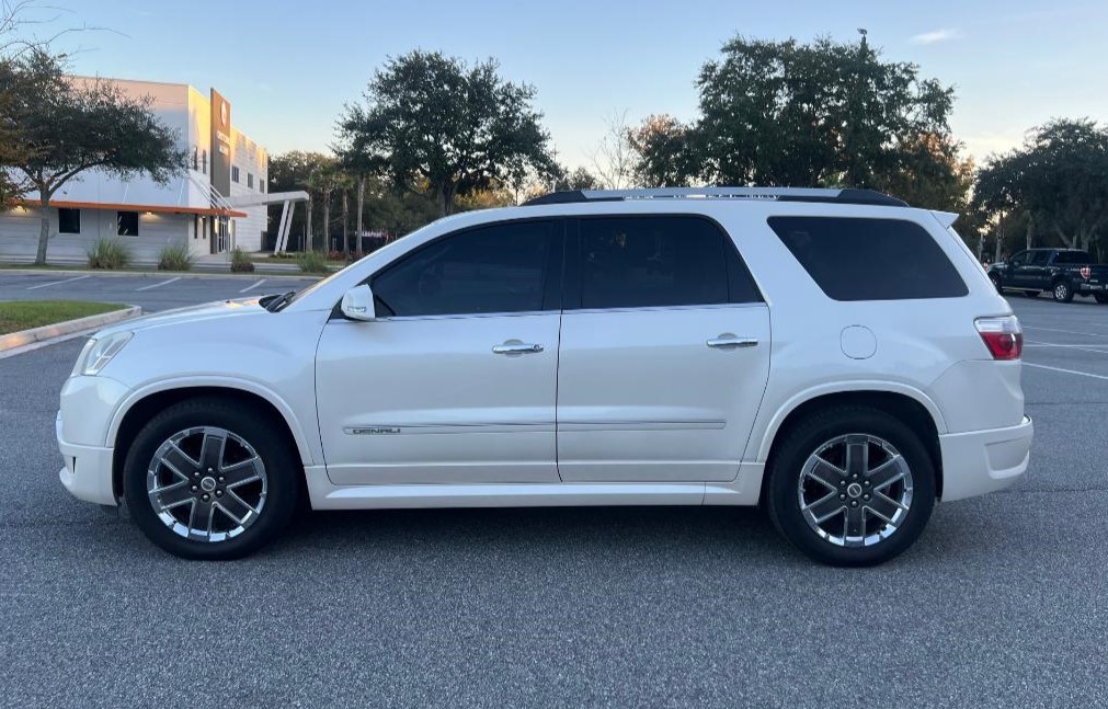 FOR SALE 2012 GMC ACADIA DENALI WITH 6 CYLINDERS ENGINE AND AUTOMATIC TRANSMISSION. THIS 2012 ACADIA HAS 178 K. MILES AND STILL LOOKS AND DRIVES GOOD. PEARL WHITE COLOR OUTSIDE IT HAS CLEAN BEIGE LEATHER INTERIOR. THIS GMC ACADIA DENALI COMES WITH ALL POWER OPTIONS, NAVIGATION, DVD PLAYER, HEATED/COOLING SEATS, SUNROOF, DUAL ZONE CLIMATE CONTROL, THIRD ROW SEAT, PREMIUM SOUND SYSTEM, STEERING WHEEL CONTROLS, ROOF RACK AND MUCH MORE. GOOD TIRES AND BRAKES. THIS 2012 GMC ACADIA DENALI COMES WITH CLEAN FLORIDA TITLE. CALL FOR DETAILS: 617-797-9561